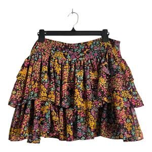 London Jean Floral Layered Mini Skirt 10 Boho Cottage Grunge 90s Retro