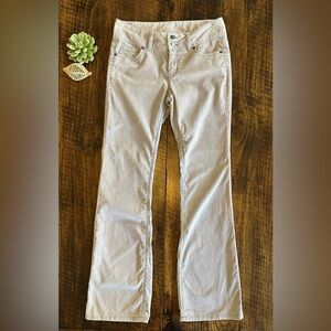 London Jean | Gray/Beige Mid Rise Bootcut Corduroy Jeans, Size 4