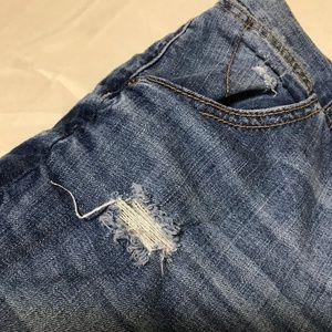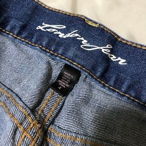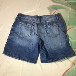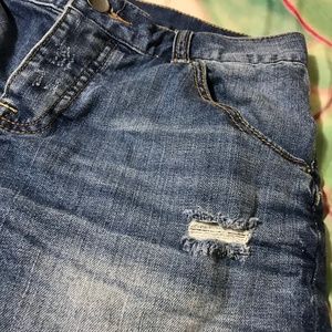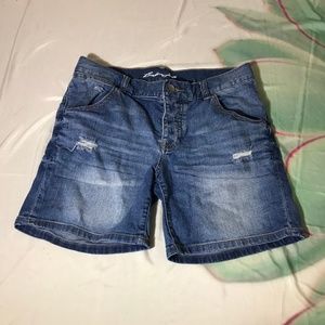 Cute and fun London Jean denim shorts! Blue denim with light wash and small (intentional) tears on each leg, with a front button up closure. In very good condition!