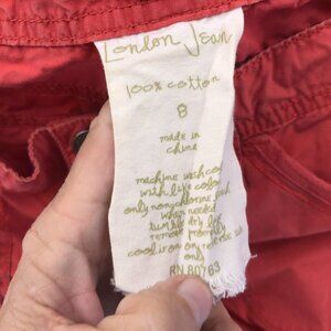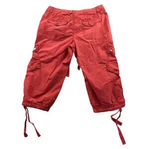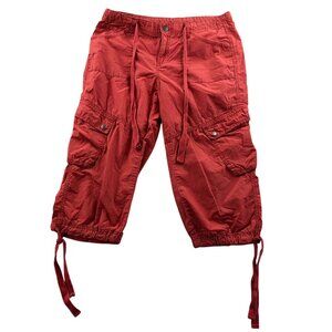 London Jean Womens Cargo Capri Pants 8 Red 100% Cotton Utility Casual Drawstring