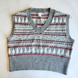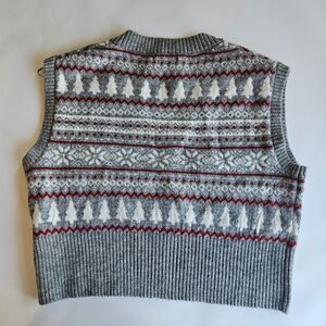 London Kaye Sweater Vest Winter Trees Acrylic Blend Red and Grey Small Preppy