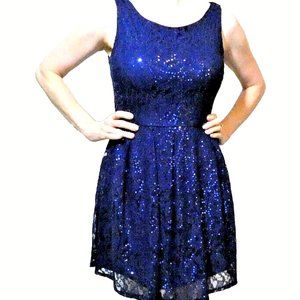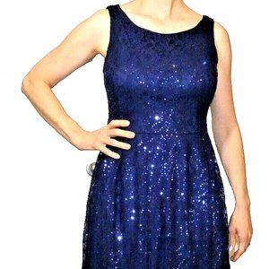 London Prom Dress Womens Size 4 Blue Mini Lace Sequins Bombshell Stylish UK