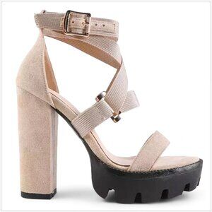 dress up or down casual to evening party event cocktail club clubbing high heels strappy ankle chunky platform faux suede versatile spring summer fun
