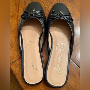 Bow slip-on flat mules. Faux leather. Worn once.