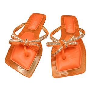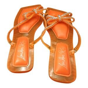 London Rag Orange Jelly Sandal Flip Flop Silver Gems Bowtie Women's Size 11