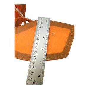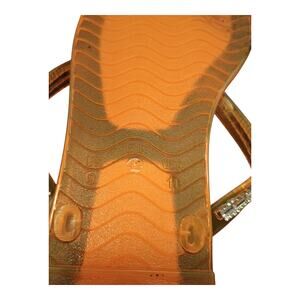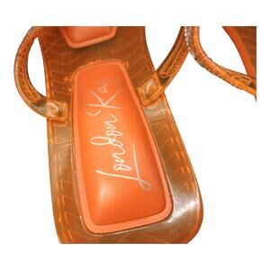 The London Rag Orange Jelly Sandal Flip Flop is a stylish and vibrant choice for women in size 11. Featuring silver gems and a bowtie detail, these sandals are perfect for a variety of occasions including travel, weddings, parties, and casual outings. The low heel height and slip-on closure make them comfortable for all-day wear, while the diamante rhinestone embellishment adds a touch of glamour. Made with synthetic materials and a rubber outsole, these sandals are durable and versatile for year-round wear. Perfect for pairing with a variety of outfits, these London Rag sandals are a fashionable and eye-catching addition to any wardrobe. New no tags just something black on sole of one shoe please see last photo.
