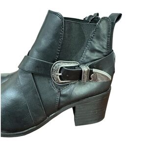 London Rag Womens Harlie Black Western Buckle Pointed Ankle Heeled Boots Boho 8