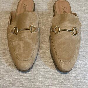 Step into effortless elegance with these chic London Rag mules. Designed in a soft beige and cream textured finish, these point-toe beauties feature a subtle gold accent and a comfortable low heel — perfect for polished everyday wear or a refined night out.
