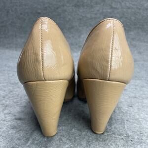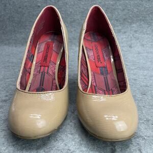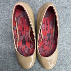 London Rebel Women US 6.5 LR-CHARO Patent Leather Shoes Beige Nude Block Heels