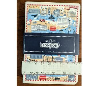 Small Pocket-Sized A6 Lined Notebooks Set of 3 London Stationery, popular in Britain and designed by British illustrator, Alice Tait. Size of each is approx 4.1in Width x 5.8in Height. Features London landmarks on the cover of each notebook. Each notebook is wide-ruled. The designs are vibrant, lively, and colourful, typical of the ever-popular Alice Tait. Gift Idea for Traveler Gift Idea for Travel Lover
