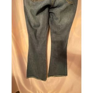 London Stretch boot cut jeans Size 12 womens permium quality denim dark washed low rise 98% cotton, 2 % spandex 36 x 34 3" zipper