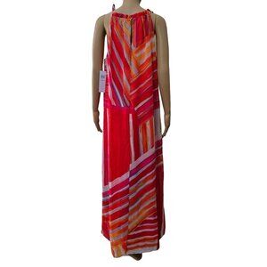 London Style Collection Womens Maxi Dress Sleeveless white/ red. Size 10