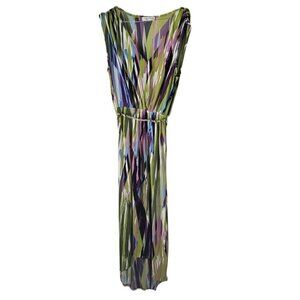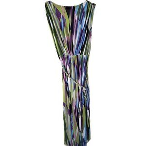 London Style Multicolor Print Sleeveless Maxi Dress with Braided Belt
