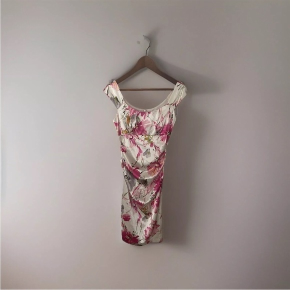☀️London Style Night Ruche Side Floral Ivory & Pink Dress Size 4