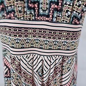 TAGS: Summer Evenings, Vacation, Cruise, Business Casual, Soft, Comfortable, Sleeveless, Keyhole Neck, Geometric Design, Maxi Dress