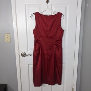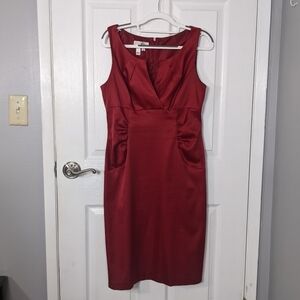 London Style Timeless Ruby Red Bodycon Split Neckline Sleeveless Dress Size 10