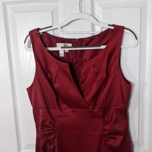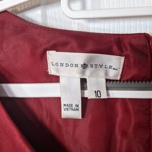 Women, Woman, Women's, Bodycon, Dressy, Dress, Mini Dress, Short Dress, Fit and Flare, Fit & Flare, Red, Sexy, Classy, High Neck, Mock Neck, Open Back, Zip Up, Zipper, EUC, Polyester, 100% Polyester, Deep Red, Femme, Feminine, Semi-Formal, Homecoming, Date Night, Night Out, Girl's Night, Maroon, Burgundy, London Style, Size 10, Spandex, Dry Clean, Split Neckline, Sleeveless, Formal Dress, Career, Office, Business, Workwear, Formfitting, Form Fitting, Sheath Dress, London Times, Ruby Red, RN 58142