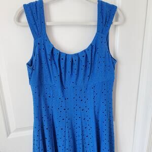 London Style Women's Sleeveless Blue Eyelet Dress Size Large