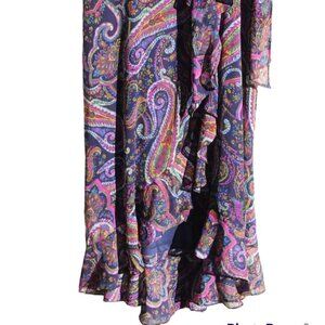 London Time Paisley ruffle maxi wrap dress Size 6 blue and Pink fit & Flare