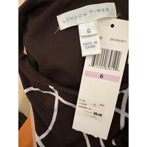 London Times 6 Brown/White Swirl Drop Elastic Waist Above Knee Sleeveless Dress