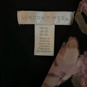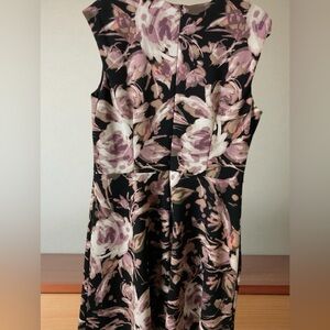 Chic mini dress with a floral pattern. Features a blend of black and pink hues. Ideal for stylish outings.