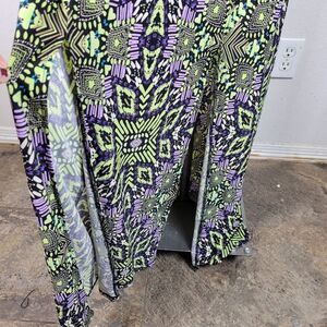 ***New with Tags*** Beautiful maxi sleeveless dress with a keyhole opening in the back and a double split leg front! The colors are a vibrant purple, lime green, black and creme!