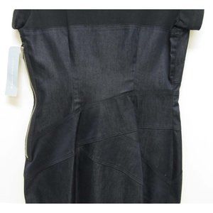 The top part is a soft tee shirt material; the bottom part is stretch denim