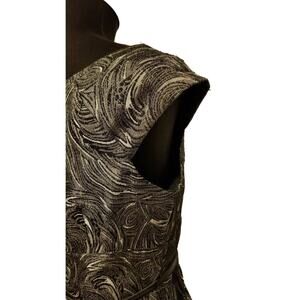 London Times Black Gray Swirled Metallic Cap Sleeve Belt Waist Dress NWT Size 10