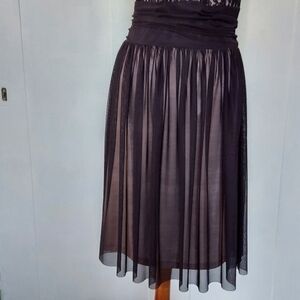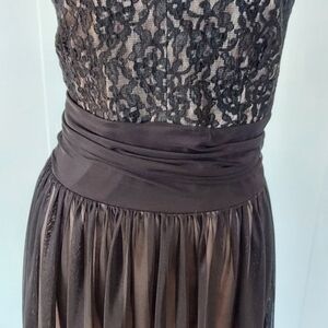 London Times Black Lace and Tulle with nude underlay V Neck both sides