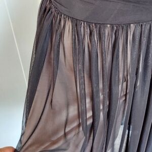 London Times Black Lace and Tulle with nude underlay V Neck both sides