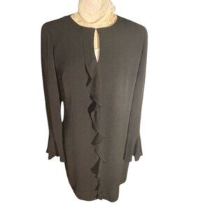 London Times Black Long Sleeve Dress size 6 With Ruffle Detail