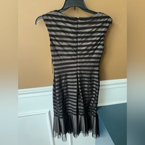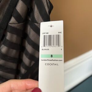 London Times Black Nude Asymmetrical Sheath Dress Size 8