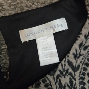 London Times Black and Cream Patterned Unlined Dress Size 10