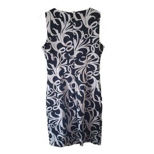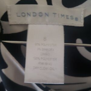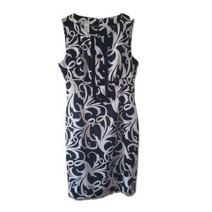 London Times Black and White Button Front Patterned Sleeveless Dress