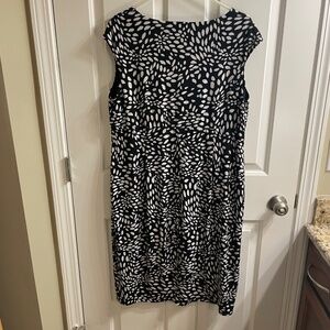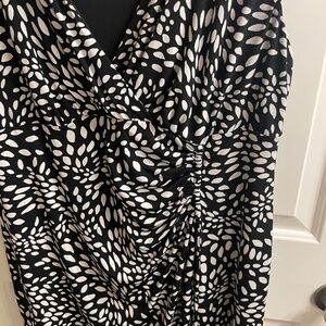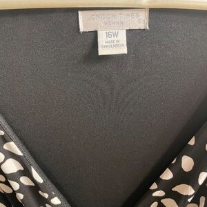 London Times Black and White Sheath Dress with Ruching at Waist, Size 16W
