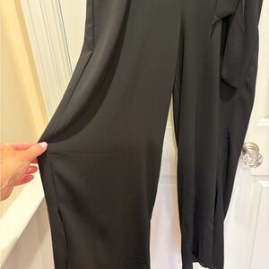 Chic black maxi dress with short sleeves. Features a stylish tie detail at the waist. Perfect for elegant occasions.