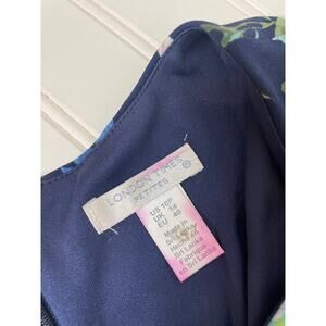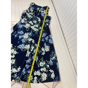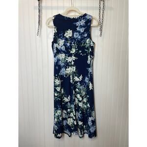 London Times Blue Floral Keyhole Pleated Midi Dress Sleeveless Womens Size 10P