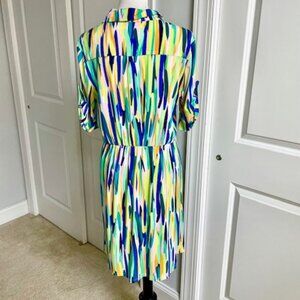 London Times Blue Green Yellow Short Sleeve Button Down Waist Tie Size 10