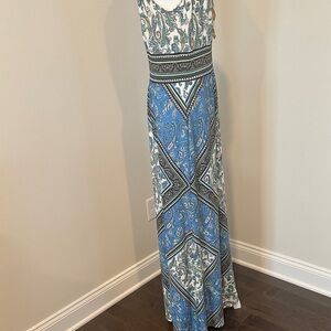 London Times Blue and White Paisley Maxi Dress
