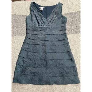 London Times Cocktail Layered Dress Womens Size 10 Blue Surplice Neck Sleeveless