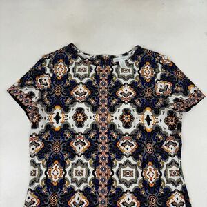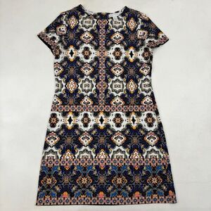 London Times Colorful Kaleidoscope A-Line Shift Dress Short Sleeve Stretch 12