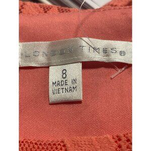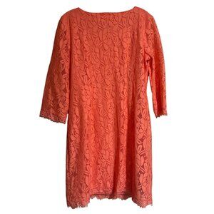 London Times Coral Lace Floral Dress Size 8 3/4 Sleeve Scoop Neck Fully Lined