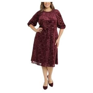 London Times Dress 18W Burgundy Lined Burnout Velvett Flare Midi Modest Grandma