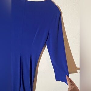 London Times Royal blue dress with 3/4 length sleeves and great rusching. Very flattering. Ladies this dress will make you look more fabulous than you already are. Best size for this dress would be medium 8-10. See measurements listed. Great condition.