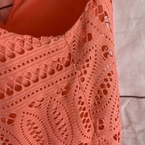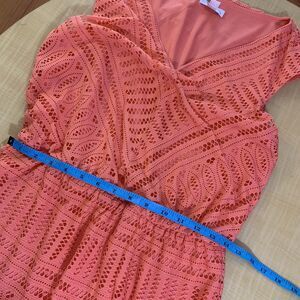 London Times Dress Maxi Midi V-neck 8 M Orange Pink elastic waist lace stretch