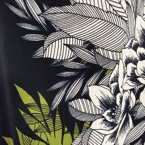 This London Times Dress features a cute graphic floral pattern in black, white, and green, making it a stylish and eye-catching addition to your wardrobe. Designed in size 4, the dress is made from a comfortable blend of 95% polyester and 5% spandex, ensuring a flattering fit with a touch of stretch.