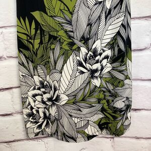 This London Times Dress features a cute graphic floral pattern in black, white, and green, making it a stylish and eye-catching addition to your wardrobe. Designed in size 4, the dress is made from a comfortable blend of 95% polyester and 5% spandex, ensuring a flattering fit with a touch of stretch.