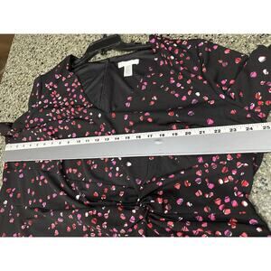London Times Dress Women 22W Black Pink Knot Front Midi Ruffle Hem Plus Size
