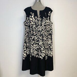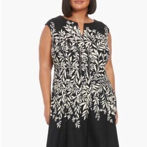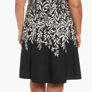 London Times Elegant Black White Floral Fit &Flare Dress Women's Plus size