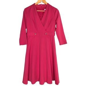 London Times Fit & Flare Dress Surplice 3/4 Sleeve Knee Length V Neck Pink 4